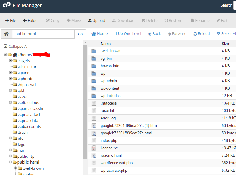 3) Find Root folder, which can be located through public.html or depending on your hosting provider.